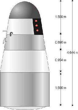 A Sencsu űrhajó háromnézeti rajza.
