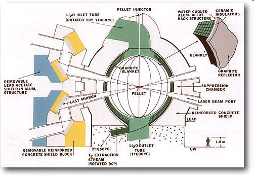 A magfúzió során könnyű atommagok egyesülnek, és az így keletkező részecskék hatalmas mozgási energiával rendelkeznek. A kutatók olyan berendezések - fúziós reaktorok - készítésén fáradoznak, melyekkel földi körülmények között is megvalósítható a fúziós reakció, mégpedig úgy, hogy abból energia is termelhető. A fúzió legmegfelelőbb üzemanyaga a Földön a hidrogénatom két izotópja, a deutérium és a trícium. Ezek annyiban különböznek a hidrogéntől, hogy atommagjukban a proton mellett egy, illetve két neutron is található. A fúziós reakcióban olyan nagy mennyiségű energia szabadul fel, hogy Magyarország egész évi villamosenergia-szükségletét mindössze 150 kg deutériummal és 230 kg tríciummal fedezni lehetne. Összehasonlításképpen, ugyanennyi energia előállításához körülbelül 10 millió tonna szén szükséges. A deutérium vízből kivonható, trícium pedig előállítható lítiumból. Mindkét anyag évmilliókig elegendő mennyiségben található meg a Földön.