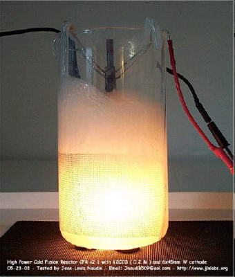 Ellentmondások a kísérletek során Fleischmann, Pons [1] és Hawkins [2] alapvető felfedezése óta, miszerint nehézvíz elektrolízisekor, ha katódként palládiumot használunk, nukleáris reakcióra kerül sor, dolgozatok százait közölték e problémáról. Martin Fleischmann és Stanley Pons elektrolízist alkalmaztak palládium elektródákon, melyeket deutériumot tartalmazó nehézvízbe merítettek. Heteken át vezettek áramot a készülékbe, időről-időre új nehézvizet használva. A deutérium nagy részéről úgy gondolták, hogy az anódon képződő oxigénnel összekapcsolódva buborékként távozott a rendszerből. A rendszer hőmérséklete az idő nagy részében stabilan 30°C volt, a távozó energia pedig egyenlő volt a bemenő energia mennyiségével. A kísérletek egy részében azonban a 30°C-os hőmérséklet hirtelen 50°C-osra emelkedett, annak ellenére, hogy a bemenő áramon változtattak volna. A felfedezés ellentétben áll eddigi ismereteinkkel, ezúttal pedig az emberiség kínzó energiaproblémáinak egyszerű megoldását ígéri. Sajnos a szóban forgó rendszer viselkedése nem egyértelmű: hozzávetőleg ugyanannyi dolgozatban (és sajtóértekezleten) számoltak be az eredeti eredmények megerősítéséről, mint cáfolatáról. A negatív tapasztalatok esetében vagy a neutronokat, vagy a tríciumot, vagy a fölös hőtermelést, vagy a magreakcióra utaló egyetlen jelzést sem sikerült megerősíteni Igen nagy a nyomás a hidegfúzióval foglalkozó tudósokon, hiszen berendezéseik költsége szerény töredékét teszi ki az euro milliárdokért felépített gigászi szerkezeteknek. Ennek ellenére mégis vannak eredményeik, a világ minden részén lefolytatott kísérletek százai-ezrei bizonyítják az alacsony hőmérsékleteken is végbemenő magfúzió létét. Nem kell tehát évtizedekben és euro-milliárdokban gondolkodni a tiszta energia megvalósítása terén, pusztán a kísérletek finomításával tökéletesíteni kellene a már ismert eljárásokat, eljárásokat, melyeknek korábban még a hatásmechanizmusát is lehetetlennek tartották. A legalaposabb, egy évtizedig tartó ellenőrző vizsgálatsorozatot az USA haditengerészetének űr- és tengeri hadviselési rendszerekkel foglalkozó kutatóközpontja végezte. Deutériumban dús vízben palládium-kloridot oldottak. Az oldatba vezetett elektromos áram hatására a rézből vagy ezüstből készített negatív elektródon együtt rakódott le a palládium és a deutérium. Fél óra elteltével a palládium bevonatú katód hőmérséklete 3 Celsius-fokkal magasabb volt, mint a környező folyadéké. Egyetlen magyarázat adódott: az energia valamilyen módon a katódban szabadult fel! A szokatlan jelenséget tovább vizsgálva sem találtak azonban egyértelmű kísérleti bizonyítékot arra, hogy az esetenként megfigyelt hőenergia-többlet atommagok összeolvadásából származna. A haditengerészeti kutatóintézet munkatársai óvatosan fogalmaztak, mindössze azt állítják, hogy érdekes jelenségre bukkantak, amely további tanulmányozást érdemel.