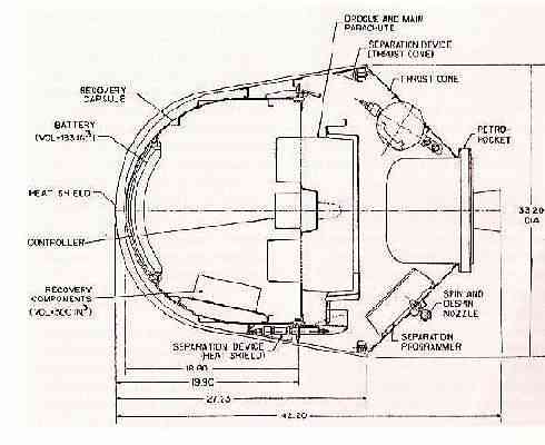 5. ábra. Az Általános Elektronikus Visszatérő Egység (SRV) sematikus rajza. Egyaránt használták a Corona és a Gambit fotófelderítő mesterséges holdakhoz, valamint ezt alkalmazták a Quill repülése során is 1964. decemberében. Az SRV-t alkalmazták az adatok Földre hozatalára, a rögzítés valószínűleg mágnesszalagra történt. (NRO)