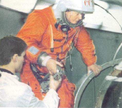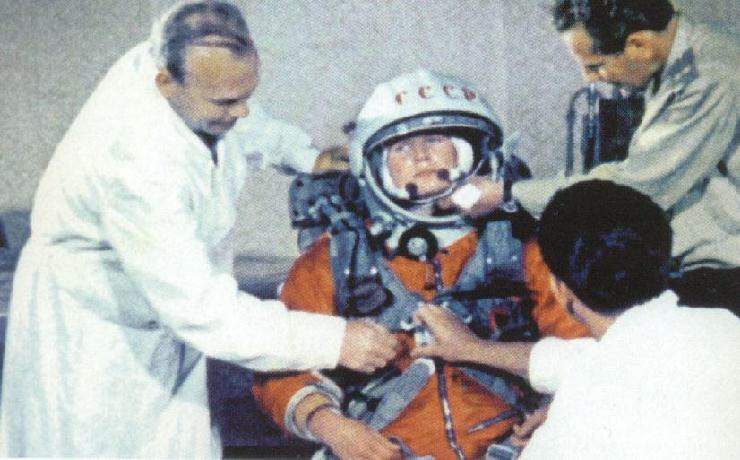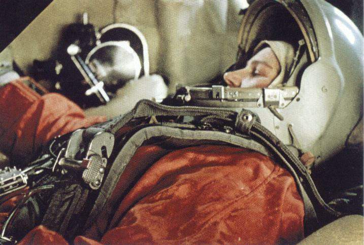 1963. június 16, vasárnap. Ideges tekintetű Tyereskovát láthatunk, amint magára ölti az SK2 jelű űrruhát, felkészülve hogy belépjen a szimulátor-kabinba a repülési előkészületek egyik utolsó állomásaként. Jobbján German Tyitov, a második szovjet kozmonauta, akit felhatalmaztak, hogy elkísérje Tyereskovát a Vosztok űrkabinhoz.