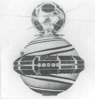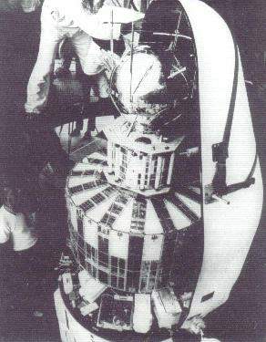 4. ábra. A SolRad/GRAB műhold a Transit 2A tetején. A GRAB 1 volt az első csillagászati mesterséges hold, és ugyancsak az első volt a sikeres hírszerző mesterséges holdak sorozatában is.