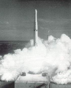 5. ábra. A GRAB 2 – Transit 3A páros indítása 1960 novemberében egy Thor Able Star hordozórakéta segítségével, a 17B jelű kilövőállásról a Légierő floridai, Patrick bázisáról. A rakéta nem érte el a kijelölt pályát, Kubára hullott, ahol megölt egy tehenet.
