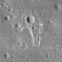 A kép tetején megfigyelhető sötét sáv arra utal, hogy a hivatalos felvétel legfelső részét láthatjuk. Ha valaki szép lassan elkezdi lefelé görgetni a fotót, vékony, vízszintes vonalakkal találkozik. Ezek azok az illesztési pontok, amely mentén az egyes felvételeket egymás mellé helyezték, hogy megkapják a nagyobb képet. Négy vízszintes elemet helyeztünk el itt, azonban mindösszesen tizenhat van belőlük, kialakítván a teljes felvételt; az utolsó elem csak részleges méretű. A fotó elérhető tiff formátumban, 14.5 MB méretben, könnyedén letölthető a böngészők számára, a formátum azonban nem szolgál túl sok további részlettel a kép minőségét illetően és még az is rohamosan romlik a nagyítás fokozásával. Most vegyük szemügyre a fehér nyilakat és az általuk jelzett objektumokat. Mivel ezek a világos (fehér) formák meglehetősen különlegesek a maguk szögeket bezáró megjelenésével, könnyű felismerni bárki számára. Figyeljük meg, valamennyi alakzat – parányi különbségekkel ugyan, de – ismétlődik az egyes vízszintes képelemeken, pontosan ugyanazon a helyen. Azonban, és ez sokkal fontosabb, az egyes a „felszín” melyen ezek a formák találkoznak, minden egyes elemen eltér, ahogy végig követjük őket. Fontos tudni, pontosan ugyanez a szisztéma ismétlődik végig a 15 képelemen. A nagy fotó teljes hosszában. Véleményem szerint a következő dolog történt itt. A valóságban mindösszesen egy igazi képelem van, valahol titokban tartják, mi pedig nem azt látjuk. Amit itt megfigyelhetünk az csupán egyetlen vízszintes képelem, melyhez hamis vásznat, illetőleg „felszínt” illesztettek, bevonták, mintha valamiféle sárréteg lepte volna el, netán festékréteg, a következő képelem aztán másik fedőréteget kapott, a következő megint másikat és így tovább. Aztán összerakták egymás mellé az egyes részeket és megkapták a teljességgel hamis nagyobb méretű felvételt. A fehér nyilakkal jelzett objektumok láthatóan kimaradtak legnagyobb részüket tekintve e hamis fedőréteg alól. Ez igen NAGY hanyagság, hiszen ismételt megjelenésüket valamennyi képelemen figyelemmel kísérhetjük. Így könnyen felismerhetjük őket is rájöhetünk, mi is történt itt. Világosabb a Napnál, és csak csodálkozhatunk azon, hogy oly sok hozzáértő tudós és akadémikus ennyire nyilvánvaló hamisításokat nem képes észrevenni oly hosszú időn át. Akárhogy is ezek az adatok már az 1970-es években megjelentek, és megszámolhatatlan azoknak a száma, akik megvizsgálták évtizedeken át. Másrészről, nem szabad megfeledkezni arról, hogy pontosan olyan emberek, mint te vagy én és ugyanazzal az áramlattal sodródnak. Abban hisznek és azt látják, amit elvárnak tőlük, hogy higgyenek és lássanak és nem látják azt, amit nem várnak el tőlük, hogy lássanak. Az alsó képrészlet kissé meggyőzőbbnek látszik ezen az lo2-70-h3b jelű felvételen. Most pedig figyeljük meg a sárga nyilakkal jelzett függőleges vonalakat. Ezek lehetnek a Hold sávjai, szintén nagy mennyiségű képhamisítási alkalmazással megfejelve, miként a témáról Skipper többször is beszámol, például az http://www.marsanomalyresearch.com/evidence-reports/2004/070/moon-banding.htm és az http://www.marsanomalyresearch.com/evidence-reports/2004/071/more-moon-banding.htm írásában a Clementine holdszonda felvételeit elemezve. Természetesen, ha nagyon erőlködünk, végső kétségbeesésünkbe azt a magyarázatot találhatjuk, hogy a fényképezőgép filmtovábbító rendszere hozta ezeket a fehér nyíllal jelölt alakzatokat az egyes képelemeken, innen az ismétlődés eredete. Ezek az alakzatok igen gyakran ismétlődnek, ezért a vitában teljes joggal letehetünk néhány zsetont ezen állítás mellé. Néhányan mélyen beágyazódnak a képelem középső területébe, ilyen pl. a bal oldali fehér nyíllal jelzett alakzat, másik a vízszintes elválasztó vonalhoz köthető, a jobb oldali fehér nyíl mutat rá. Ám, ha valaki letölti és megvizsgálja a jelen felvételhez tartozó tiff file-t, apró eltéréseket találhat és olykor nagyobb különbségeket, amikor a környező képhamisítási alkalmazások elérik ezeket a részeket is, ennek köszönhetően ezek az alakzatok képelemről képelemre változnak. Ezt kívánjuk alátámasztani a mellékelt három képrészlettel, de ugyancsak bizonyító erővel rendelkezik számos ilyen alakzat is. Kristálytisztán látható, a „felszín” későbbi és meghamisított alkalmazás.