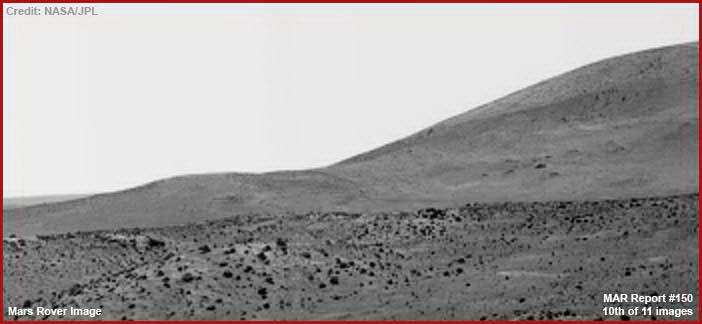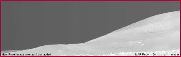 A fenti, kilencedik, tizedik és tizenegyedik felvételt az összehasonlítás céljából illesztettük ide. A kilencedik felvétel az AS17-140-21494 katalógusszámú, azonos a jelen beszámoló első felvételével, a tizedik felvétel marsi tájat mutat, miként azt a Spirit vagy az Opportunity marsjárók látták. Igazsághoz tartozik, elfelejtettem honnan származik a marsi fotó (talán e-mailen érkezett?) és nem volt időm utána kutakodni, ezért nem szerepel a fotón azonosító címke. A 11. felvétel pontosan ugyanaz, mint a marsi 10. kép, azonban negatívba átfordítva és egy kis, ám meglehetősen hatékony maszatolási technika alkalmazását követően a hegyek felületén, csak illusztrálásképpen, milyen könnyedén lehet holdi tájképet elővarázsolni számítógépes programok segítségével, sima és tökéletes hamisítást. A látvány és a benyomásunk e kép kapcsán, valamint a 9. holdfotó masszívumaira tekintve, nyilvánvaló. Észrevehetünk bármi hasonlóságot e két, egymástól százmillió km-re lévő világok, és a képek elkészítésének több évtizedes különbözősége ellenére? Vegyük észre, a marsi táj kissé más szögből látszik, mint a holdi. Vannak természetesen egyéb különbségek is, de gondolom a hasonlóságok is egyértelműek a hátteret uraló masszívumok tekintetében. Mindez csak véletlen lenne, vagy éppenséggel különböző példáit látjuk a mesterséges tájberendezésnek, variációkat egy adott témára, valakinek az adatbázisából? Mindkét esetben úgy meredünk magunk elé, mint hipnotizált kismadár, mivel valakik azt akarják, hogy arra koncentráljunk, amit elvárnak ők elvárnak tőlünk, miközben a valódi űrkutatás, amiért fizetünk, teljesen más irányban zajlik egy egyesek kisajátították maguknak, mint saját kis titkos kalandjaikat? Nem állítom, hogy tudom a választ, de meglehetősen nehéz nem gyanakodni mindezek tükrében. Nem is beszélve a hamisításokról és az egyebekről. Annyit szeretnék remélni, hogy a legalább érdekesnek találod az összehasonlítást, ha nem is meggyőzőnek.
