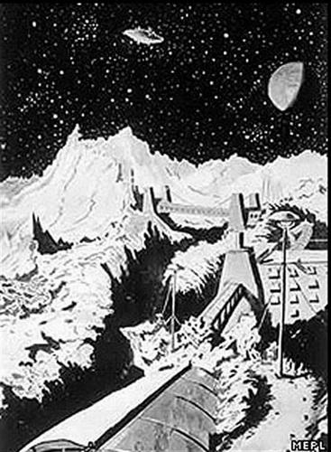 A fentebb látható kép egy Holdon működő aranybánya vázlata, amelyet Konsztantyin Ciolkovszkij készített 1895-ben. (Az Ég és Föld csodái)