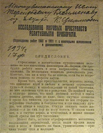 Ciolkovszkij nagyot alkotott a korai szakirodalom űrrepülést érintő témakörében, beleértve a klasszikus írást: Az Űr felfedezése - reaktív hajtás révén (1896). 1898-ban megalkotta a rakéták működését leíró alapegyenleteket a rakéta-egyenletét. 1903-ban került először napvilágra az ezt tartalmazó publikáció, néhány hónappal azelőtt, hogy a Wright testvérek történelmi (ember-vezette) repülése megtörtént. Úgy tűnt, hogy többen mások is foglalkoznak Ciolkovszkij űrutazási terveivel (ahogy cikk írt róla „Az Űr felfedezése rakéta-hajtotta eszközökkel”) – az orosz Naucsnoje Obozrenyije (Tudományos napilap) hasábjain jelent meg – sajnos lefoglalták és elkobozták a cári hatóságok. Ahogy Ciolkovszkij többi, széles körben kutatott munkája is eltűnt (kevesebbet kapott cikkeiért, mint egy tanár). Mindez sok évvel azelőtt történt, hogy a nyugat egyáltalán tudomást szerezhetett munkásságáról.