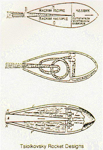 Mielőtt a Wright testvérek megtették volna első repülőútjukat, ő már egy űrállomás és folyékony üzemanyaggal hajtott rakéta terveit vázolgatta. Munkáit 1903-ban jelentette meg, 3 hónappal azelőtt, hogy az első ember a levegőbe emelkedett. Folyékony hidrogén és folyékony oxigén volt a kedvenc keveréke. A hidrogént elég nehéz volt előállítani. Ugyanakkor észrevette, hogy a keringési pályára való ráálláshoz többfokozatú rakétákra lesz szükség.