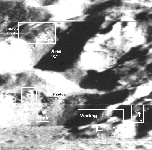 Ezen a területen három szokatlan objektum található. A fehér, gömb alakú objektum a sötét színű téglalappal, John Lear elmondása szerint, „úgy néz ki, mint a Douglas DC-6B pilótafülkéje. Feltételezhető, hogy a Weekly Wordnek igaza volt,”
