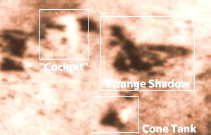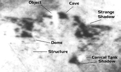 Alaposan megvizsgálva számos krátert és egyéb helyszíneket, azt tapasztalhatjuk, igen sok szokatlan alakzat „rejtőzködik”. Leginkább annak a ténynek betudhatóan, hogy igen kisméretűek a kép méretéhez képest, de ha valaki egyszer felismeri a léptéküket, és tudja, hogy mit keres, igen könnyű megtalálni ezeket a helyszíneket. Űrhajók, vagy lakónegyedek? Látszólag mindkettők, mivel némelyikük inkább siló alakú mint gömb; az általuk vetett árnyékokból következtethetünk erre. A fentiről egyértelműen kijelenthető, repült, amikor az Apolló-16 kamerája lefényképezte, a lebegő gömbök természetesen szintén repülés közben kerültek lencsevégre.
