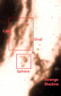 Ismét elmondható, számos páratlan formát láthatunk ezen a képen. Olybá tűnnek, mintha barlangbejáratok lennének, előttük azonban egy elvékonyodó ovális objektum látható, árnyékát figyelembe véve, hengeres alakú.