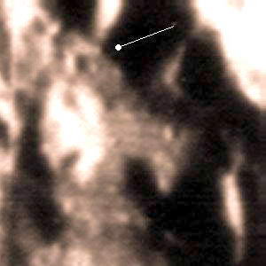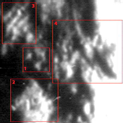 Színkiemeléssel növeltük a kontrasztokat. Ez a részlet a Kopernikusz #5 felvételből való az irányok betartása mellett.