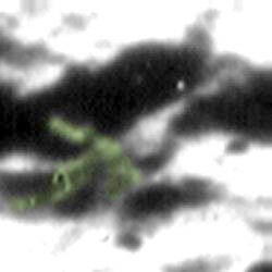 Színkiemeléssel hangsúlyoztuk ki az említett alakzatokat. Az eredeti felvételt használtuk fel ehhez, a Kopernikusz #5 jelűt. A rejtélyes alakzatot jobban láthatjuk ebből a szögből.