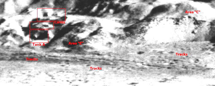 Szemből tekinthetünk egy hatalmas tartályra; első alkalommal a #5-ös képen fedezték fel. Mintha valamiféle jel lenne az „orrán”, és határozott párafelhőt láthatunk mögötte felemelkedni. Igen fényesen veri vissza a napfényt. Figyeljük meg az alábbi, #5 felvételen ugyanezt a tartályt.