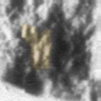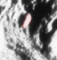 Az egyik legjobban kivehető rejtélyes objektum, mivel nagyon tisztán látható, emellett pedig megtalálható a #2 felvételen is. Fontos megjegyezni, a napfény jobbról érkezik, az árnyék balról látható, ellentétben a kráéterekkel, melyeknek a bal oldaluk napsütött és a jobb oldaluk árnyékos, miként az látható az alább, ugyancsak a #5 jelű fotóból vett képrészleten is.