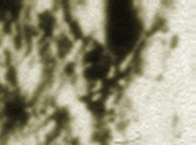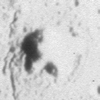 Kis, kerek kráterek csoportja. A napfény a kráterek bal oldalát világítja meg, a jobb oldaluk pedig árnyékban van, pontosan ellenkező módon, mint a fent bemutatott tartály esetében. Ez bizonyítja, hogy a tartály kiemelkedő objektum, nem pedig mélyedés.