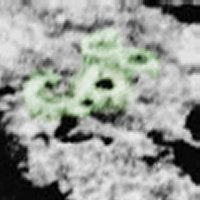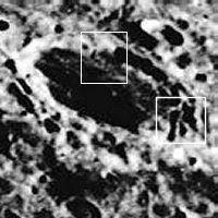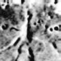 Kicsiny gömbök vonalakkal összekötve nagyon hasonlóan a Kopernikusz-kráternél látottakhoz. A szemben lévő vonalak utak lehetnek. Ez a terület a kép egyéb részeit mutatja.