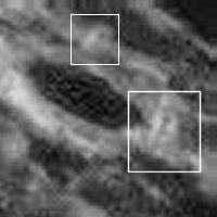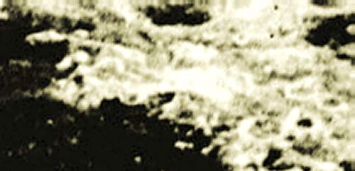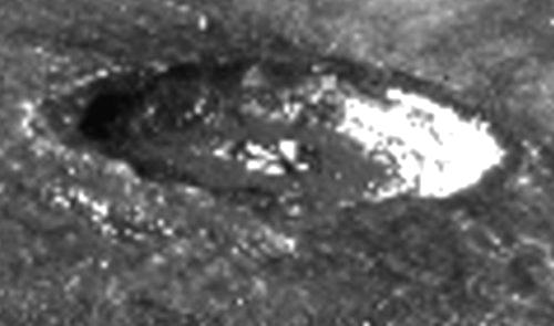 Ez a jelenség a Hold közepének jobb oldalán található mindkét képen. Az egyik jelenség egy valamiféle szürke halom, ami nem passzol sem a képhez, sem az árnyékhoz és körbeveszi a környéket. A retusálás jelenségével állunk szemben? Esetleg valamiféle boltozatot látunk? A jobb oldali képen fehér résznek látszódik ez terület. Kutatások folynak arra nézve, hogy ez a terlüket megtalálható-e más felvételeken. Ha igen, talán további ismeretekhez juthatnánk. - Zorgon.