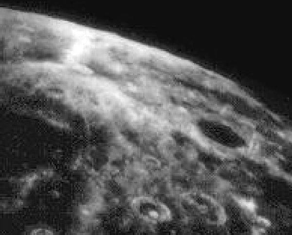 Készült 3:30-kor, holdi idő szerint,  az LO-01-ről, a kráter jobb oldaláról