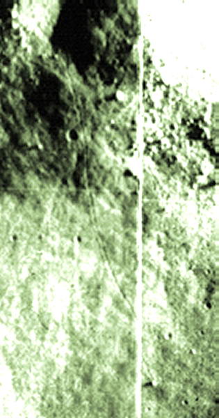 Vagyis, 1 méter/pixel felbontáson dolgoztak, ebből számunkra mindösszesen a 60 méter/pixel felbontás érhető el; továbbá, az elkészült felvételek mindösszesen 20%-a…. Mindösszesen a Lunar Orbiter-3 és -5 fotói közül, az LO-1-es, az LO-2-es és az LO-4-es felvételei közül egy sem. Vajon ki dönti el, mely képeket nézhetjük meg? Ja, és valamennyi felvétel „kozmetikázott”…