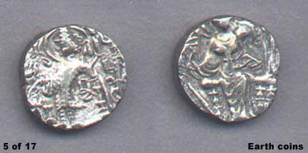 Miként az látható a fenti, 2. és 3. osztott felvételen, közelebbi rálátásban korong alakú tárgyat, jól kivehető, valamiféle domborzati megmunkálás van a felszínén és valami, vagy inkább valaki, szerepel rajta. Fontos tudni, hogy a RAT berendezés nagyjából 5 cm átmérőjű és 5 mm mély vágatot tud kialakítani, e közeli képeket pedig a Mikroszkopikus Képalkotó készítette. Ez pedig azt jelenti, hogy a korong alakú tárgy nagyon kicsi, talán kisebb, mint egy tízcentes érme. Arra gyanakszunk, hogy a RAT vágó/fúró kereke kiásta ezt a tárgyat az eredeti helyéről, ahová el volt temetve. A folyamat során a tárgy valószínűleg megsérült, a rajta lévő véset megkopott, miközben a RAT berendezésen található kefék kifényesítették. A korong jobb felső részén, annak szélén láthatók a valószínűséggel marás következtében létrejött nyomok. Ezek a nyomok bizonyára függőlegesen is kiterjednek, megsértve mélyebben a korongot. Emlékezzünk vissza, a RAT berendezést úgy tervezték, hogy kemény sziklafelületen is képes legyen magát keresztülrágni, az óramutatóval megegyező forgásiránnyal, ezért ez a tárgy sem menekülhetett meg a sérüléstől, ám talán valami mégis felismerhető felületén. Másrészről, az is figyelemre méltó, hogy a korong gyorsan meg is állapodott, miután a RAT fúróeszköze kikaparta és arrébb dobta magától a fúrófejtől. Lehet, valóban egy érmével van dolgunk, egy medállal, gombbal, talizmánnal, vagy akár fülbevalóval. Kétség nem férhet hozzá, az elejét látjuk, sajnos nem láthatjuk a hátulját e felvetés ellenőrzése végett. Vessünk viszont egy pillantást az alábbiakban földi érmékre összehasonlításképpen. ,.