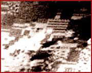 A fenti, ötödik kép a mélyedés másik részletét mutatja, kissé az első négy felvételen látható terület alatt. Itt még több indát láthatunk, főleg a kép tetején, nagyobb számban jelenik a halványan kivehető csomós rész a fotó középső területein. Feltűnik néhány kanyargós nyom is, nagy valószínűséggel a felszín alatti girbe-gurba formákat követik, ezeknek hangsúlyozzák ki körvonalát. A bal alsó sarokban más jellegű alakzattal találkozhatunk, testes forma nyúlik a magasba. Teljességgel különbözik a táj többi elemétől és meglehetősen furcsán néz ki. A fenti, ötödik képet azért illesztettük ide, hogy alaposabban bemutassuk az alakzatok textúráját és mintázatát, valamint azt, milyen jelentősen eltér egy közeli tájelemtől ebben a fallal körülvett, sekély felszíni mélyedésben. Nos, nem néztük végig valamennyi, a hatalmas kráter mélyedésében, és a fotócsíkon fellelhető különböző formát, viszont az igen rossz felbontás mellett csak azokkal tudunk foglalkozni, melyek tényleg egyértelműek, vizuálisan „átjönnek” aránylag tűrhetően, miként azt főként a harmadik és negyedik felvétel nagy kiterjedésű alakzatai esetében tapasztalhatjuk.