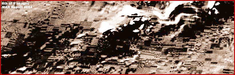 A fentiek tudatában azt szeretném, ha mindenki nagyon közelről megvizsgálná e három felvételt, különösen a leglényegretörőbbet, a legkisebbet a három közül. A formák elég rosszul láthatók, aránylag kis méretűek is, de ahhoz elegendően jó a felbontás, hogy felismerhető legyen, mit is látunk. Persze, ehhez nyitott tudat is kell. Az első dolog, amire rá szeretnék mutatni annak a számos, szinte az egész területen előforduló – láthatóan kiemelkedő objektumoknak - a teteje, melyek sokkal erőteljesebben verik vissza a napfényt, mint a környezet, ezzel jól behatárolhatóvá teszik magukat az objektumokat, alakjukat és méretüket. Ez a jelenség tipikusnak tekinthető sima tetejű épületek esetén erős napfényben. Most tegyünk egy pillantást a szórványosan elhelyezkedő objektumokra, különös tekintettel a tetőzet fényvisszaverő-képességére, vegyük azt is észre, hogy a közelebbiek, szögletes árnyékot vetnek. A két hatás együttesen háromdimenziós hatást kelt, az alakzatokat még jobban meghatározva. Igen kemény bizonyíték, nem igaz? Valóban feltételezheti bárki is, hogy a képfeldolgozás során esetlegesen keletkező hamis képi információk útját állják, illetve visszaverik a napfényt? Hogy árnyékot vetnek? Hasonlóképpen. Vessünk egy pillantást a helyszín általános megjelenésére. Figyeljük meg az objektumok véletlenszerű felbukkanását, ahogy betöltik a kráter alját, figyeljük meg az alakzatok változatosságát az egységes mintázatot mutatóktól az egészen bonyolultakig. Ezek a vonások kifejezetten civilizációs alkotásokra jellemzők, egy helyen felszaporodó, időről-időre átalakított, különböző célokra létrehozott épület-struktúrák esetében. Képi elemek nem viselkednek ily módon, tekintetbe véve típusukat és eredetüket. A háttérben húzódó és alapul szolgáló, szigorúan szabályos mértani pixelezettség és digitális mátrix a képi elemeket sokkal geometrikusabbá és egységessé teszi, ismétlődővé, erősen koncentrálttá, sűrűbbé és sokkal tömöttebb mintázattá. Az egységesség és koncentráltság árulkodó nyom eredetüket illetően, jelen esetben pedig tökéletesen hiányzik. A döntés az Olvasóé, vajon hisz-e a saját szemének és megdolgoztatja-e kissé a gondolkodását. Ha nem, sajnálatosan követni fogja a többiek véleményét. Mint mindig, ez is választás kérdése.