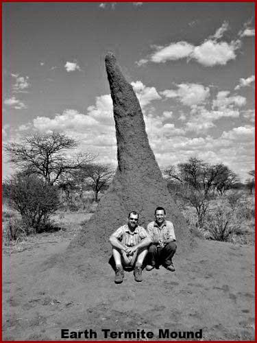 Miként az a fenti fotón látható, néhány észak-afrikai (Namíbia) termeszvár igencsak hasonlatos a bemutatott marsi formákhoz. Pusztán érzékeltetni szeretnénk, hogy az élet, most éppen a Föld estében, a termeszek élőhelyét példának felhozva, felhasználhatja és átalakíthatja a természetes geológiai forrásokat függőleges, felfelé mutató formákká, s ugye nem elvátható, hogy ilyesmiket lássunk. Más szavakkal, habár geológiai anyagot látunk, mégis, élet rejtőzik mögötte (termeszek), még akkor is, ha a felbontás jelent esetben, amilyen közeli a kép olyan, de ahhoz mindenképpen nagyon kevés, hogy egyetlen termeszt is láthassunk, a termeszvár felszínén. Továbbá, ez a függőleges irányítottság nyilván a föld határozottan erősebb gravitációjából is egyértelműen következik – összehasonlítva a Mars tömegvonzásával. Nos, nincs egyértelmű és cáfolhatatlan bizonyítékunk arra vonatkozóan mit is láthatunk itt a fenti, hatodik felvételen ami a Marsot illeti, ám arra gyanakszunk, valamiféle élettel van dolgunk, legalábbis ezen formák kialakításához bizonyára köze van az életnek, a hideg sarki (jégsapka) környezet ellenére. Ha valaki nagyon közelről megnézi a hatodik felvételt, észreveszi, hogy az objektumok közül igen sok felszínét viszonylag rövid, de annál nagyobb számú szőrszerű valami fedi. Az a másodlagos tulajdonság lehet az egyes alakzatok része, de valami egészen más is, akár az említett alakzatokon növekvő valamiféle opportunista növényzet.