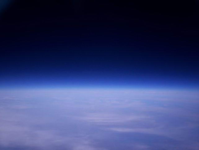 Tessék "fölfelé" nézni, a világűr felé! Az eredmény: 32 km magasságban a Föld felszíne felett a légkör Rayleigh szórás miatti fényessége rendkívül csekély, gyakorlatilag sötét, szinte fekete az égbolt.