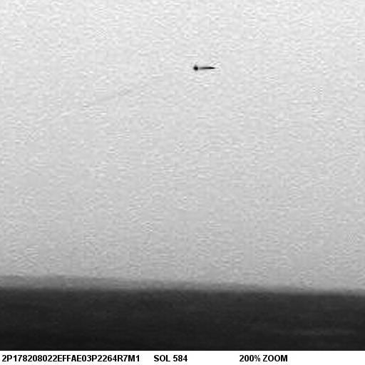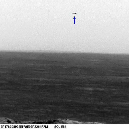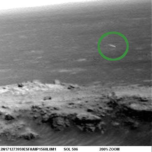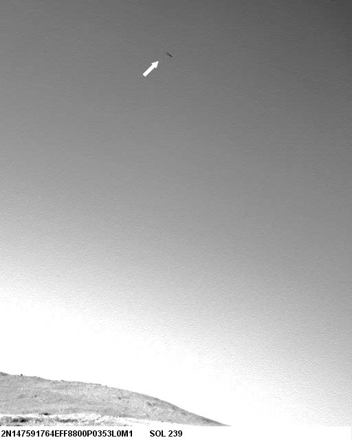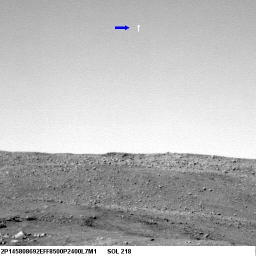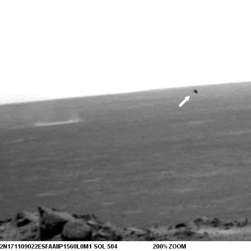 Mármint ott, ahol a Spirit jár. A hivatalos álláspont szerint ott ugyan a madár sem jár, de a Spirit felvételei meglehetősen érdekes, kérdéseket felvető látványt mutatnak. Sokszor került a Spirit kamerájának látóterébe fényképezései során olyan valami, amely egyértelműen nem a talajon volt, és egyértelműen mozgott. Hogy ezek a valamik micsodák, milyen messze voltak a kamerától és mekkorák, azt megállapítani nem lehet a közreadott képek alapján, mert közös jellemzőjük, hogy mindig csak az egyik oldali kamera képén szerepel. Ennek több oka lehet: