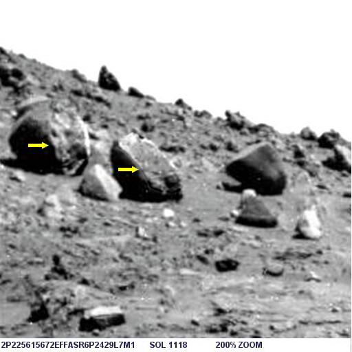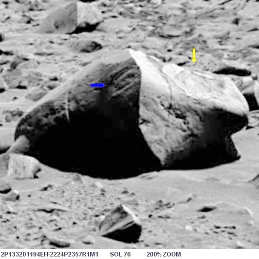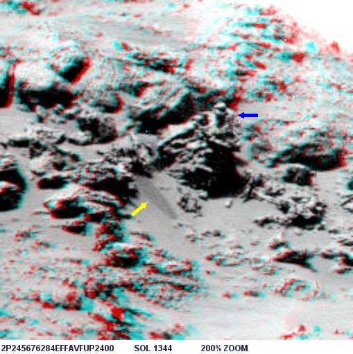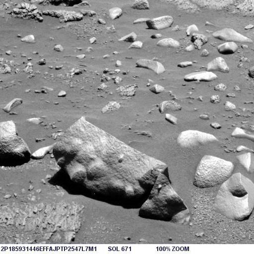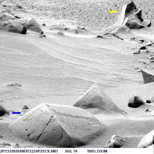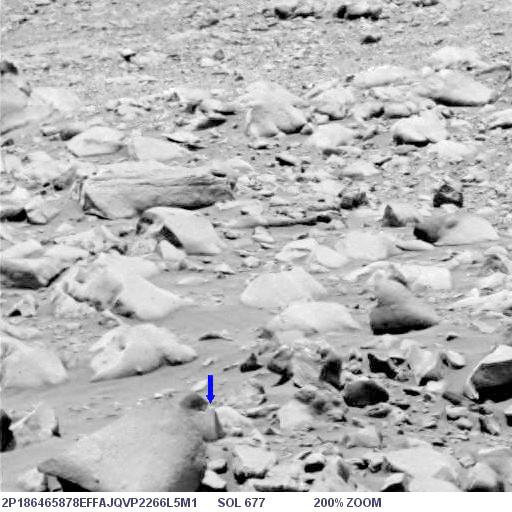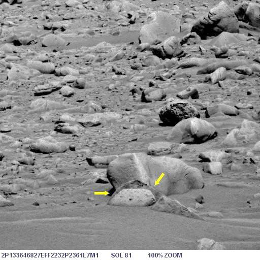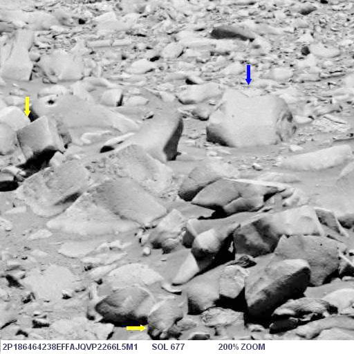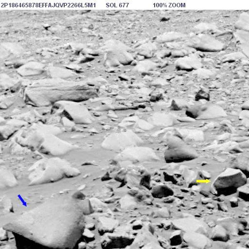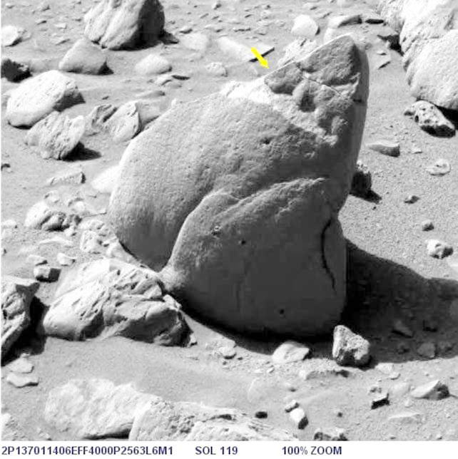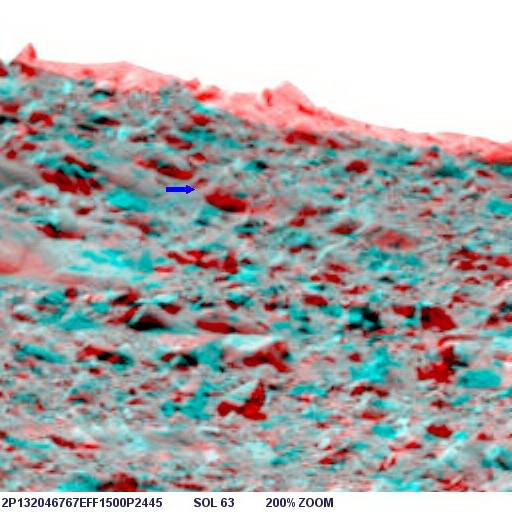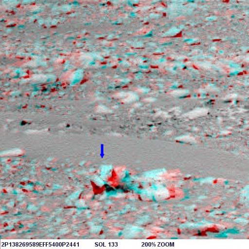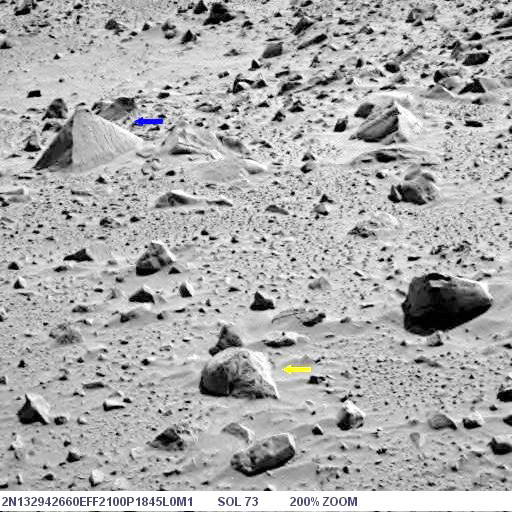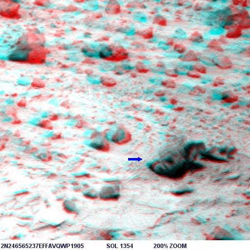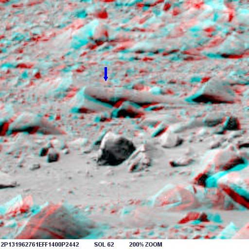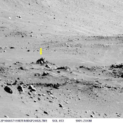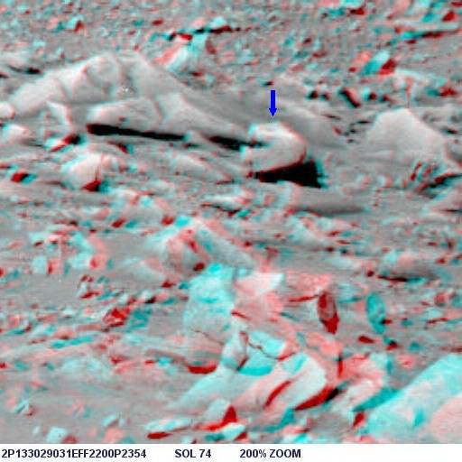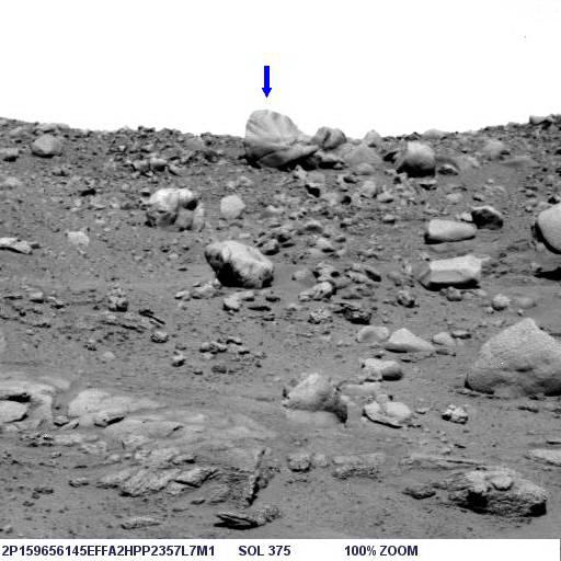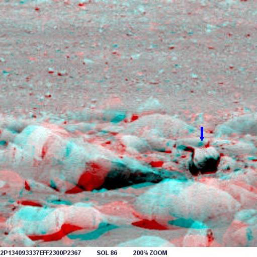 Az alábbi képen látható az objektum nagyított képe, helyes pozícióban, ugyanis a képen a Columbia Hills-től nyugatra elterülő síkság és a távolabbi dombok vannak a háttérben, a síkság pedig vízszintes: