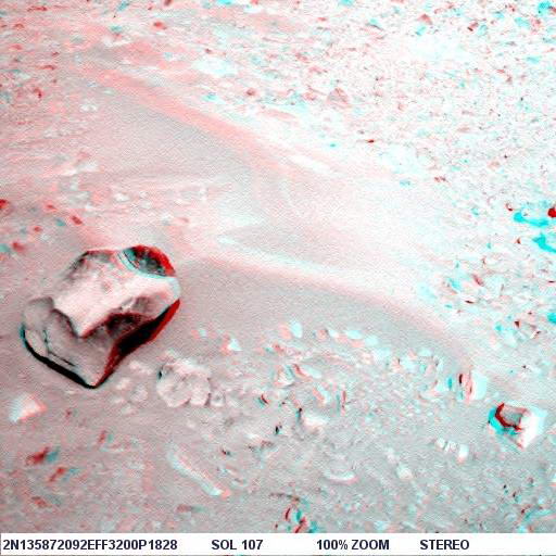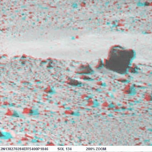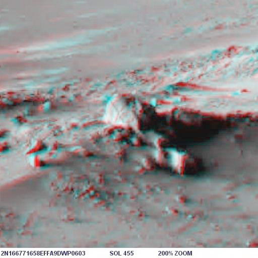 Mindenkinek javaslom, hogy az alábbi linkről töltse le a "Stereo Photo Maker" ingyenes programot, és akkor az eredeti, Spirit által készített sztereo képpár felhasználásával saját maga is létre tudja hozni a számára legmegfelelőbb anaglif képet. A link: http://stereo.jpn.org/eng/stphmkr/ A program egyszerű exe file, azonnal lehet indítani. Ezzel a programmal végeztem el a képek nagyítását is a "resampling" funkció bekapcsolása mellett, így nem pixelizálódott a nagyított kép. Előrebocsátom, lesznek érthetetlen dolgok: miért ott, miért úgy van ott a képen, ami ott van. Én sem értettem, talán, aki készítette, az igen.