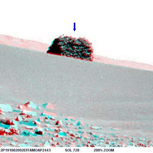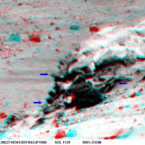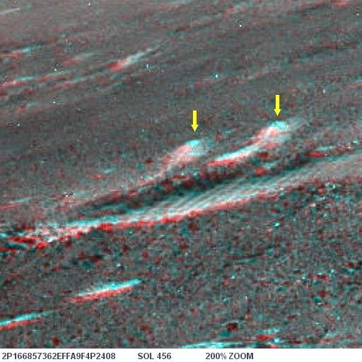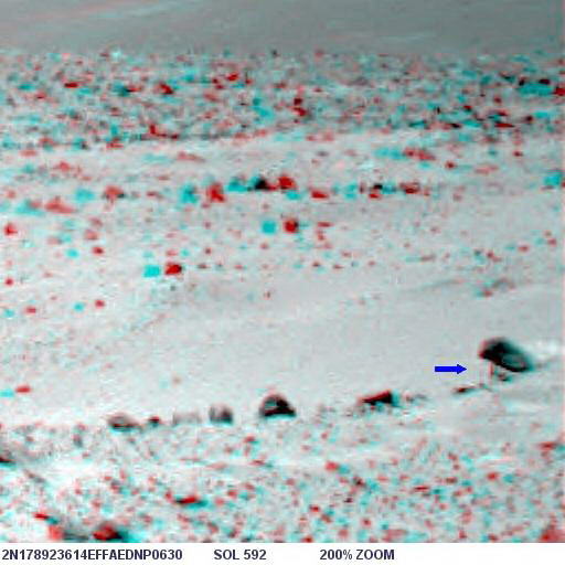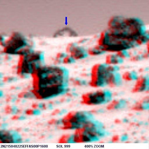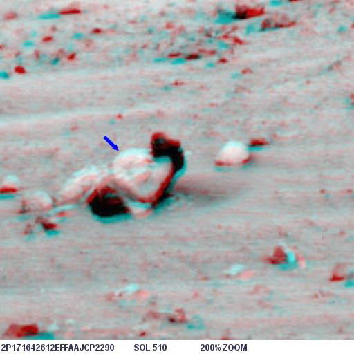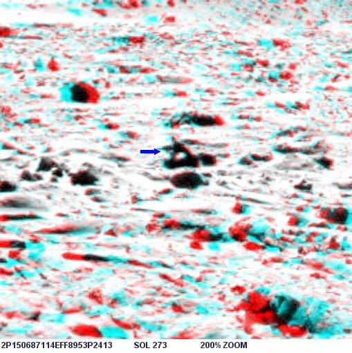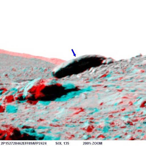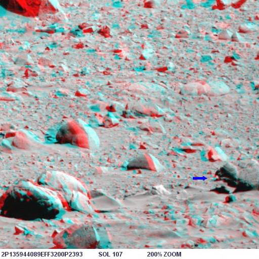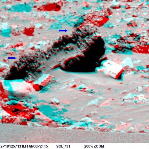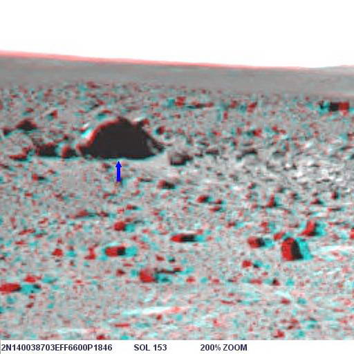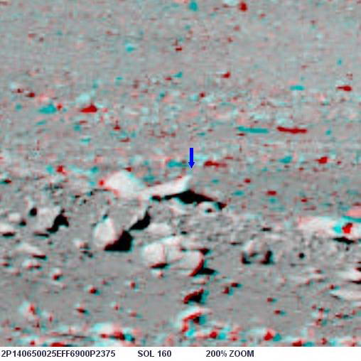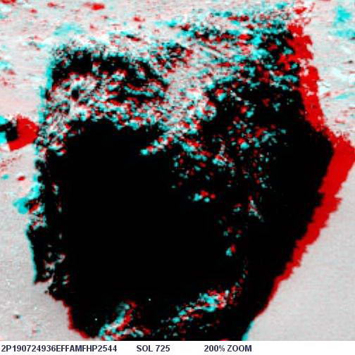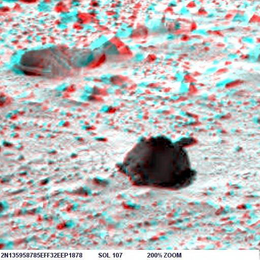 Véleményem szerint egészen más dolgot látunk. Ahhoz, hogy felismerhetőbb legyen, mit is láthatunk a Spirit képein fekete "kövek"-ként, nézzünk meg néhány ilyen "kőről" készített képet térhatású képként és nagyítva.