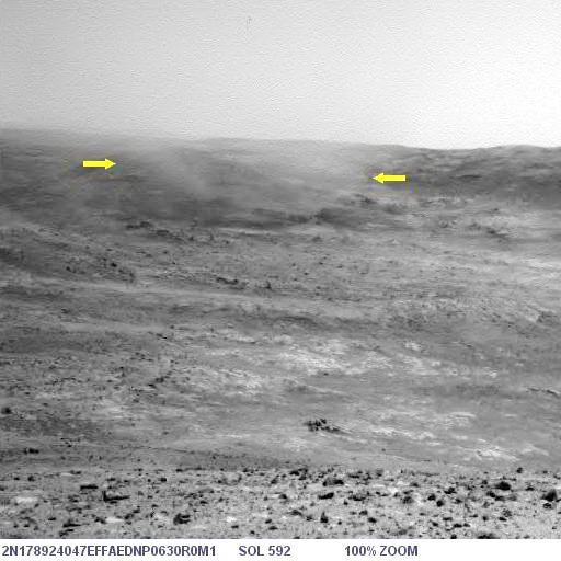 A sárga nyilakkal jelölt részen bizony a felszínen járnak a felhők a Columbia Hills dombja közt...