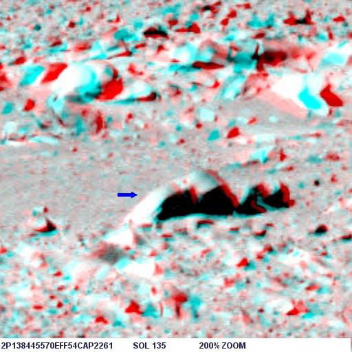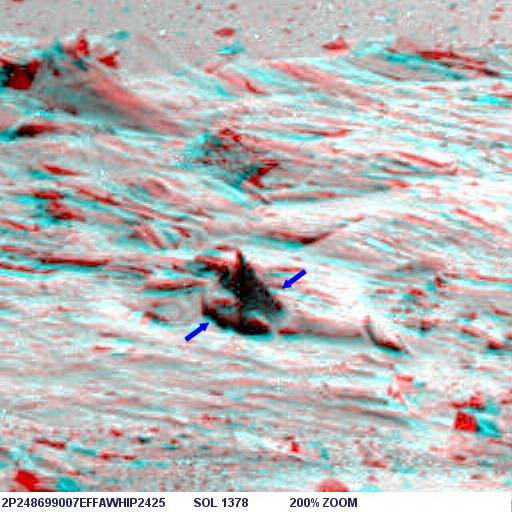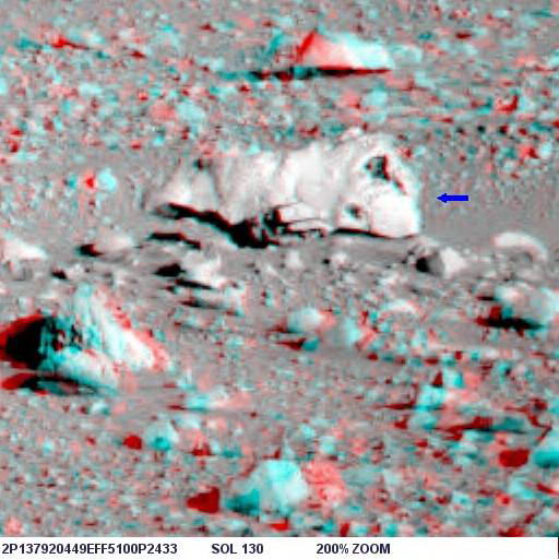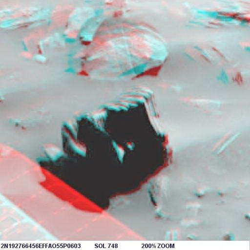 Van azért egy kis gond. A címben szereplő "szikladarab", nem egy darabból áll, hanem a sztereo kép megvizsgálása során kiderül, hogy többől, úgy tűnik 4 darabból. Nézzük csak!