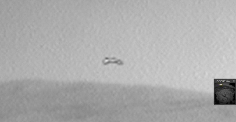 A Curiosity ez év március 14-én készítette a mellékelt felvételt. Egészen pontosan a jobb oldali akadályfigyelő kamerájával. A lencsevégre kapott objektum láthatóan ovális formájú, a hátuljából mintha „kitörtek” volna egy darabot, a szélei pedig lefelé görbülnek. Ez pedig minden bizonnyal aerodinamikai szempontokból történt így, illetve a hajtómű megfelelő működéséhez vált szükségessé. Mérete ismeretlen. Első ránézésre igencsak hasonlatos a Csillagok Háborúja sorozatban látott homoksiklók egyikére. Lapos tárgyról van szó, a felületén megcsillan a Nap fénye, ezáltal további érdekes részleteket fedezhetünk fel. A szerkezet elülső részén, minden bizonnyal a haladási irányban, két, félgömb alakú kiemelkedést láthatunk. Ha a fantáziánkat szabadon engedjük, és miért ne tehetnénk, e két formában akár egy-egy védőburkolatot, és talán magukat a pilótákat is felfedezni vélhetjük. Az igazságot e fotó esetében sem tudhatjuk meg jó darabig, hiszen a NASA úgy tesz, mintha ez a kép nem is létezne, és inkább a Mars felszínén 3.5 milliárd ezelőtt hömpölygő bővizű folyókról beszél… Egy dolgot azonban összefoglalásként elmondhatunk, a Curiosity felvételén látható objektum semmiféleképpen sem tekinthető „pixelhibának”, „kamerahibának”, „szélfútta sziklának”, „a fény és árnyék véletlen játékának”, és semmi olyasminek, amivel a NASA előszeretettel vesz semmibe bennünket. Bizonnyal nem is madarat láthatunk, sokkal inkább valamiféle intelligens irányítás alatt álló légijárművet; a vita csupán azon folyhat, vajon a pilóták is benne ülnek, vagy csak távirányítással működik. Ám egy végső kérdés még mindig marad ez után is: kik az alkotók?