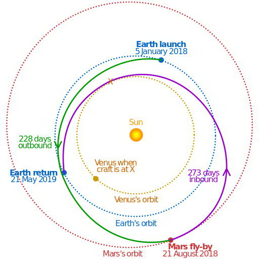 Marskerülés 2018-ban Amikor Dennis Tito (az első űrturista, nyilvánosságra hozta elképzeléseit, lényegében megmosolyogták. A helyzet azóta változott, egyre több űrvállalat csatlakozik kezdeményezéséhez, a tervezési munkák gőzerővel megindultak. Nem kevesebbről van szó ugyanis, mint arról, hogy 2018-ban két ember - az emberiség követeiként egy férfi és egy nő, egy házaspár – 501 napos űrutazás során, elrepüljön a Mars mellett és biztonságban vissza is térjen onnan. A küldetés 2018. január 5-én indulna, s mindösszesen 2.5 milliárd dollárba kerülne. Ez az összeg nagyjából a NASA által a Marsra küldött Curiosity költségvetése. Tito nonprofit alapítvány hozott létre az utazás támogatására. Már korábban felvette a kapcsolatot a NASA-val a szükséges technológiák kifejlesztése kapcsán. A Bigelow Aerospace felfújható modullal szállna be, a szóba jöhető hordozórakéta pedig a SpaceX nehéz Falcon rakétája lehetne. A megjelölt dátum különösen alkalmas egy ilyen repülés végrehajtására, hiszen a naptevékenység minimumon lesz, kevéssé kell tehát az ártalmas sugárzással foglalkozni, továbbá a Mars kifejezetten közel lesz a Földhöz, vagyis a repülés rövid idő alatt végrehajtható, egyúttal egybeesne Magellán utazásának 500., valamint az Apolló-8 holdkerülő repülésének 50. évfordulójával.