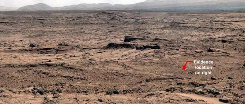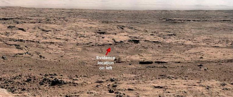 Valaki már megint „szemetelt” a Marson Mindig csodáltam azok türelmét, kitartását, szaktudását, éles szemét, stb. akik, ki tudja mennyi időt töltenek egy-egy, több gigapixelnyi képelemet tartalmazó, marsi fotó elemzésével. Mindeközben tudván azt, hogy ezeket a felvételeket a lehető legváltozatosabb módokon hamisítják. És mégis. Kitartásuk olykor bizony eredményre vezet, s az általuk közreadott ismeretek a NASA-t a legtöbbször mély hallgatásba kergetik, hiszen értelmes módon már ők is képtelenek tagadni a nyilvánvalót - a „szélfútta szikla”, a „homokdűne”, a „fény és árnyék játéka” – magyarázatok már az óvodásoknál sem jönnek be -, akkor meg már inkább meg sem szólalnak. Nem történt ez most sem másként, ám fontos újra és újra emlékeztetni arra, hogy „amennyiben a fotók valóban a Marson készültek”. Ebben sem lehetünk ugyanis a legtöbb esetben biztosak, hiszen olyan tárgyak bukkannak fel a képeken, melyek nem igazán „oda illőek”, mint pl, fél pár cipő, matchbox autó, metronóm, vasalótalp, csődarabok, szobor-elemek, stb. Jelen esetben a Curiosity marsjáró PIA16453 jelű panoráma-felvételéről van szó. A NASA Photojournal oldalán is megtalálható. A szóban forgó kép 2012. novemberében készült.