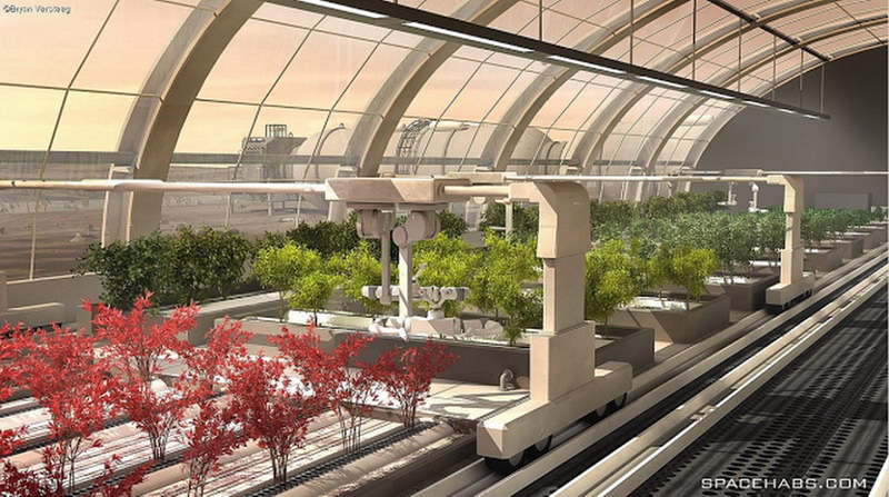 3. ábra. Egy marsi üvegház belülről. Az oxigén előállítás mellett az élelmiszer-termelés is fontos szerepet kap.
