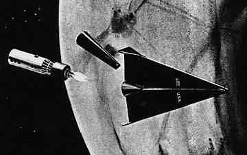 Bizonyára nem „véletlen egybeesés” csupán, hogy az amerikai X-repülőgép program szintén 1945-ben kezdődött. 1947-ben Charles Yeager már át is lépte rakéta-repülőgépével a hangsebességet. 1955-re ezzel a technikával sikerült a világűrt is elérni, s az onnan való visszatérést tanulmányozták. Már ekkoriban az újrafelhasználható eszközök kutatásába fektettek hatalmas energiákat, valamint abba, hogy miként lehet a lehető legkisebb tömegbefektetés árán (hajtóanyag, ejtőernyőrendszer, stb.) visszahozni különböző szerkezeteket az űrből, hiszen egyáltalán nem mindegy, hogy a felbocsátott hasznos teher tömegarányát tekintve mennyi a ténylegesen „hasznos” a visszatéréskor.