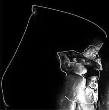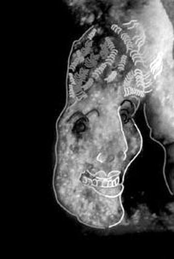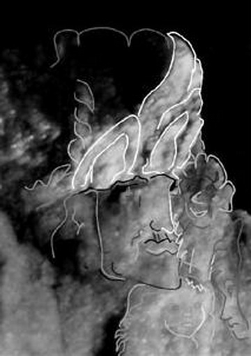 Részlet. Az arcképet, melynek valós mérete 12 x 7 mm, a tigris körmén alakították ki. Talán volt egy tébolyult uralkodó, akinek a "Tigris körme" volt a megkülönböztető jelzője.