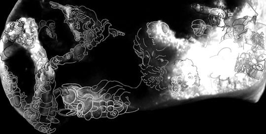 1983-ban egy kavicsnak látszó pendrájvot találtam. Hogy kik és milyen módszerrel kódolták felszínén az információkat, azt ne kérdezzék tőlem, mert nem tudom. Tartalmilag sem kívánom elemezni a látottakat. Nem vagyok kultúrtörténész, sem időutazó és nem is én olajozom szorgalmasan a csillagok tengelyét. Csak rajzolom, amit látok