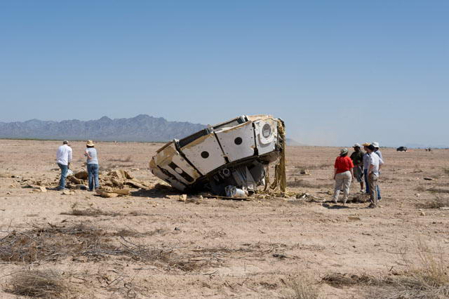 10. ábra. Az Ares-I-X emkelkedés közben Az Orion űrhajó repülhet legénység nélkül is, ekkor a Parancsnoki Egység helyére Teherszállító Modult csatlakoztatnak, ebben az esetben a Nemzetközi Űrállomás személyzete számára és a folyamatos működés fenntartásához szükséges eszközöket, berendezéseket, tartalék-eszközöket élelmiszert, tudományos kísérleti egységeket szállíthat, 2009. áprilisában mutatták az új Orion űrhajó modelljét, s el is kezdték vele a különböző kísérleteket, egyebek között vízre szállási próbákat az új űrhajó hullám-állóságának megtapasztalására. Július 31-én, egy másik tesz során, C-17-es szállítógép vitte fel a magasba a modellt és dobta ki 8300 méteres magasságból. Valamennyi ejtőernyője kinyílt, az utolsót kivéve. Az eredmény - durva becsapódás…