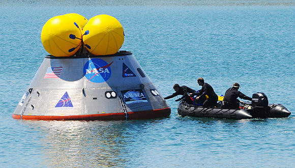 9. ábra. Próbáljuk vízre! Az eddigiekkel ellentétben viszont a Parancsnoki Egység újra felhasználható lesz, a tervek szerint akár tízszer is. A Műszaki Egységhez csatlakoznak az energia-ellátást biztosító napelemek, itt kapnak helyet a pályamódosítást végrehajtó hajtóművek, az üzemanyag és a kommunikációs rendszerek. A legénység által elhasznált levegőből ugyancsak a Műszaki Egységben vonják ki a széndioxidot, s pótolják vissza az elhasznált oxigént. A legénység által termelt hulladékot és szennyvizet szintén a Műszaki Egységben gyűjtik, méghozzá zárt rendszerben. Amerikai űrhajókon korábban mindig üzemanyagcellákat alkalmaztak napelemek helyett, ezért most víztartályokat kellett beépíteni.