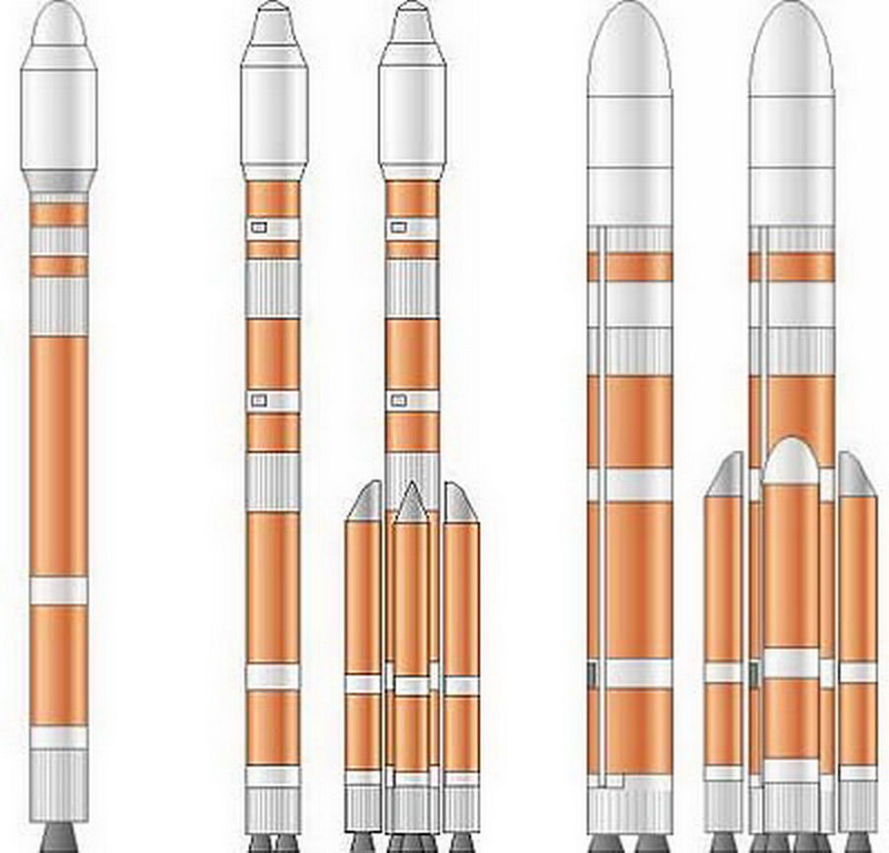 32. ábra. A kínai űrállomás- és holdprogram kivitelezésére új, nagyteljesítményű hordozórakéta is szükségessé válik. A feladatokat a Hosszú Menetelés 5 különböző változataival kívánják megoldani.
