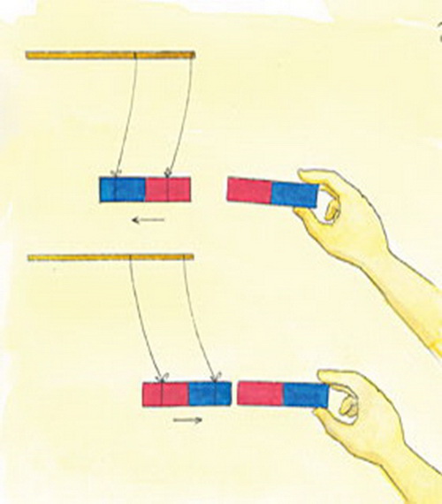 mágnesrudak ellentétes pólusú végét közelítjük egymáshoz, vonzást